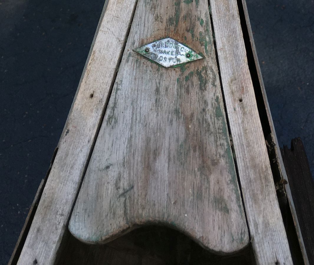 Frederick Brodbeck Jr. was born December 31,1869 in Dedham, MA. In the 1896 Boston City Directory and earlier ones he is listed as a “mathematical instrument maker” which I take to mean he was making rulers, drafting scales, protractors, slide rules, drafting compasses etc. He first advertised as a canoe builder in the Directory in 1897 but given the time required to compile the information for the directory he was likely building canoes in 1896. Who he learned the canoe business from is unknown but there were several canoe builders in the area at that time. In 1900 he was boarding with his widowed sister Emily, her daughter Anna and his uncle William Brodbeck, on Washington Street, West Roxbury, Massachusetts. He married Minnie L. Karcher in Dedham, MA in 1907. He and Minnie never had children. Frederick, working alone, built canoes in a small building behind the Dedham Boat Club. He was an early member of the club and a respected paddling coach and team captain for the club. There are numerous articles in the Boston Globe about canoe races spanning several years. He died May 12, 1930, at age 60.