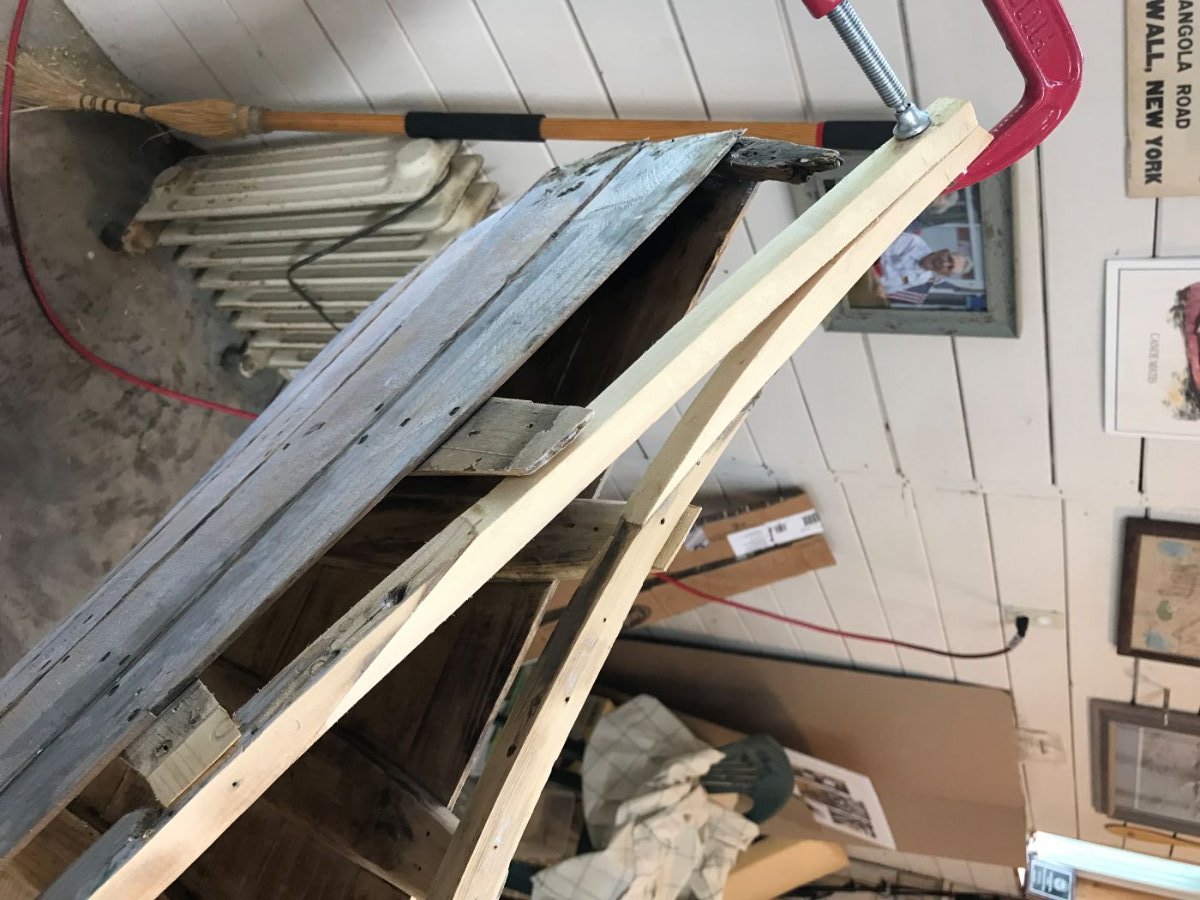 I thought I might provide an update on my progress with the old Brodbeck I bought last Spring. I had started a thread a while ago with a couple pictures of the old girl trying to show the planking pattern for those who are interested in such things.