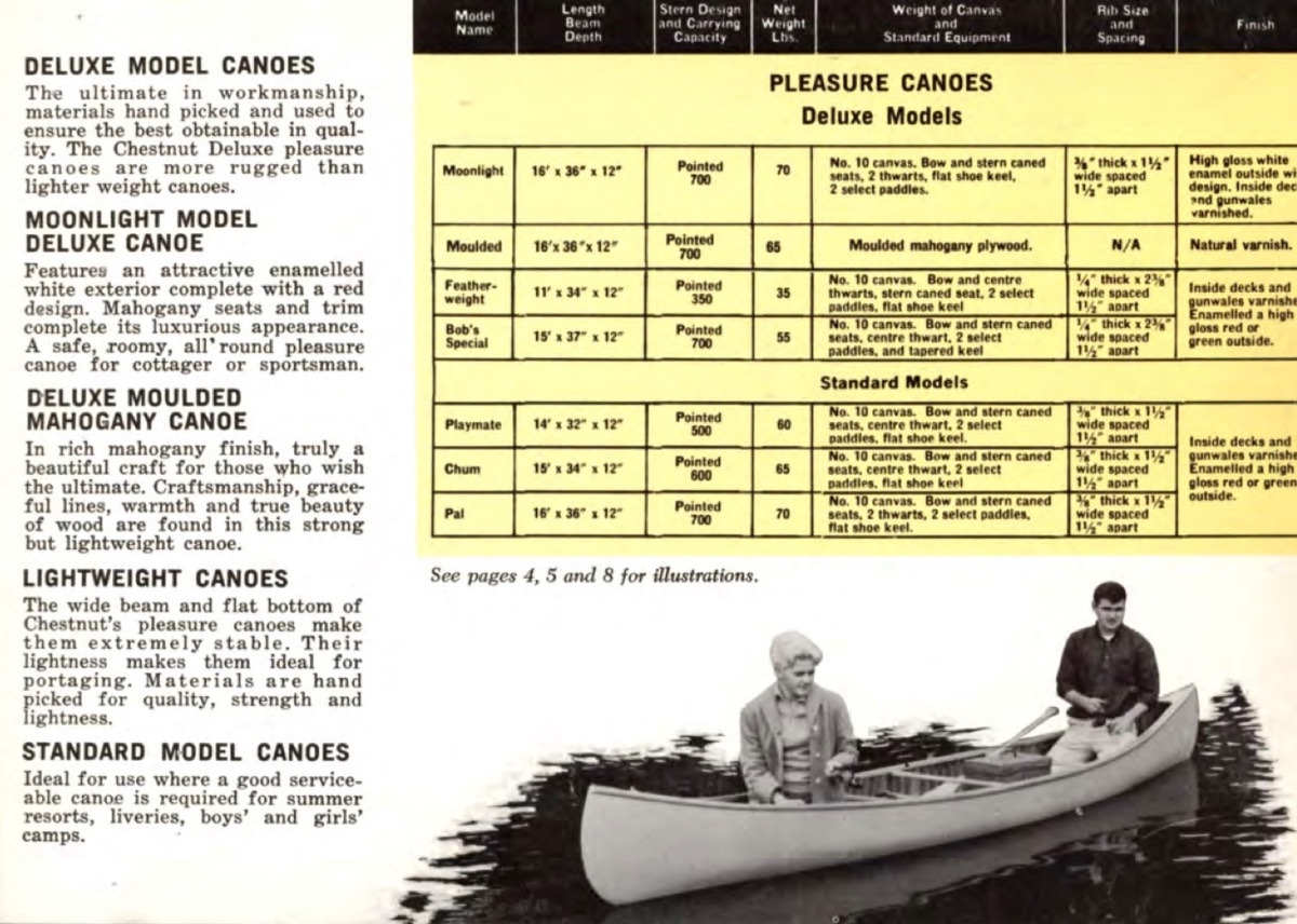 I was curious if anyone has one or knows more about Chestnut moulded mahogany canoes? I can only find it in the 1964 catalog, it isn't in the 1962 or 1965 catalog (I couldn't find a 1963 catalog). Was it only made for one or two years?