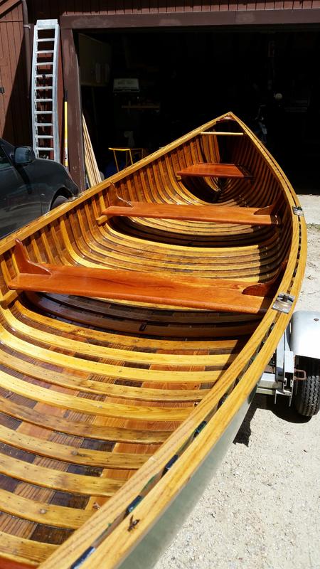 I've been working on my double ender. According to the build record it was constructed in 1943. It has steel tacks @#$%^&!! It appears to have been originally painted on the interior rather than varnished. I stripped and stripped and stripped trying to remove all the paint with the intent of varnishing like Dave's boat pictured above. I have given up. It will not come out completely. Every little tack dent, every joint, every crevasse is filled with paint. I have admitted defeat and I generally don't give up easy. There is no evidence of varnish anywhere under the paint so I will clean it up as best as I can, replace the broken ribs, and paint it again. If I could get paint to stick to the house as good as it did to this boat I would be a happy man. The gunwales, seats, breast hooks, seat knees, seat support rails and floor rack will be varnished. This boat is set up for sailing so the mast, leeboards & bracket as well at the rudder will also be varnished so I guess there will be enough bright work to still look good. After I made the decision to paint the interior rather than varnish the clouds parted and a great weight was lifted from my shoulders. Don't try to change my mind again - the way ahead is clear!!