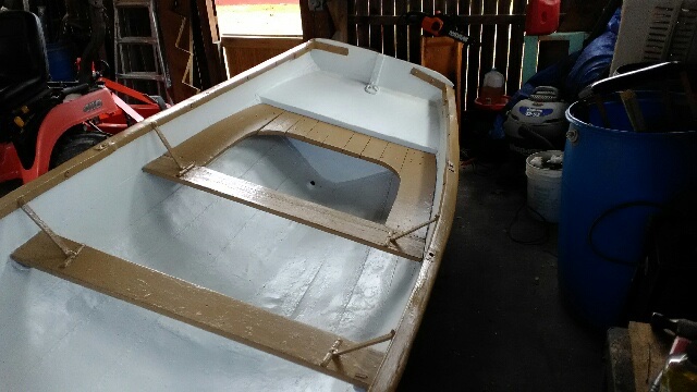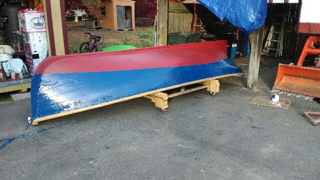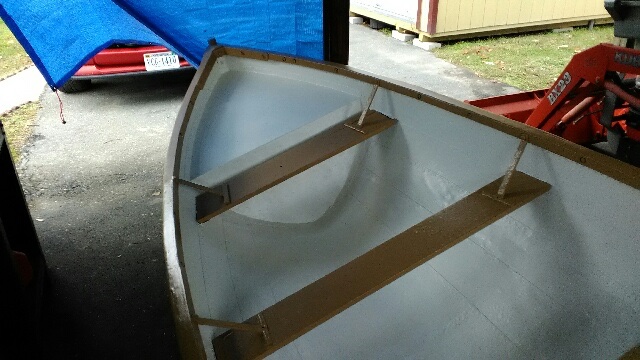 The boat is about 16’ with hollow compartments fire and aft, double oarlocks. No manufacturer’s plate. Originally found in a shed in Warrenton, VA in the 1970s.