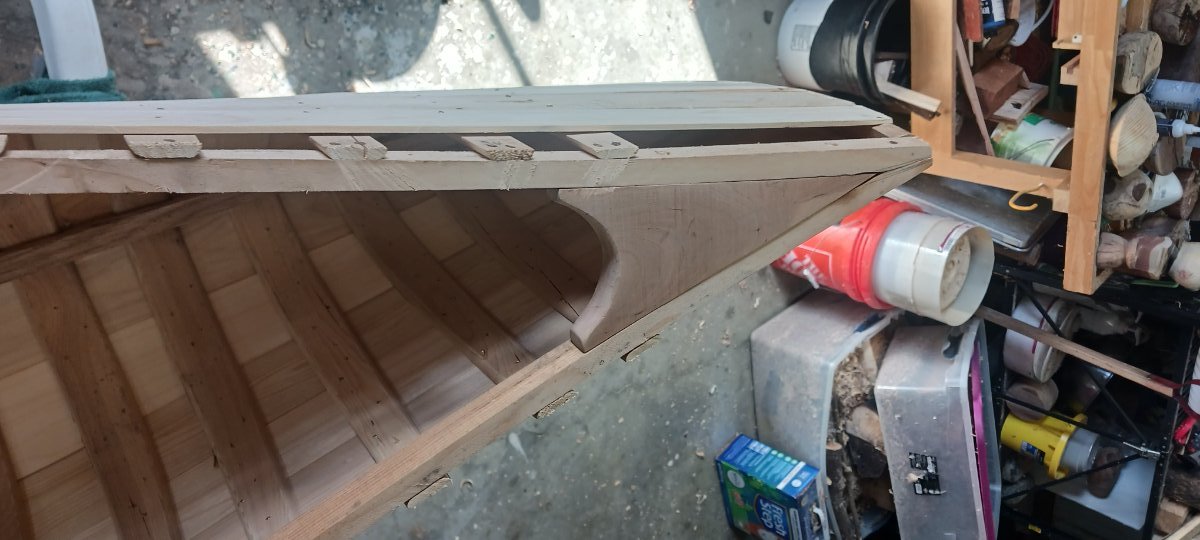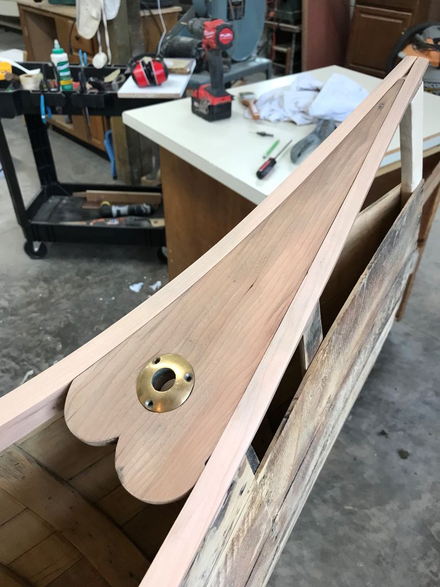 Which side is tapered? It may not matter as long as the taper is smooth and flows into the rest of the inwale. That said, some models with short tapers like the Old Town 50# model are tapered on the inside. This is a very straight taper, and it ends abruptly at a large angle at or just beyond the point where the deck begins. This made the build easy using short, straight-sided decks. As a counter-example, the Old Town Otca with its longer, curved-sided decks, has long inwale tapers that flow into the lines of the rest of the gunwale.
